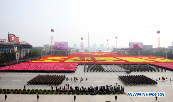 Le dirigeant suprême du pays, Kim Jong Il, également secrétaire général du WPK et président de la Commission nationale de la défense de la RPDC, a assisté à cette parade de soldats, d'étudiants militaires et de véhicules blindés, organisée dans le centre-ville de Pyongyang.