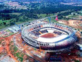 Ce stade, dont la construction a représenté 10 millions d' heures de travail, est bâti sur le terrain sur lequel l'équipe de football sud-africaine Bafana Bafana s'est pour la première fois qualifiée pour participer à une Coupe du Monde, rapporte South African Press Association (SAPA).